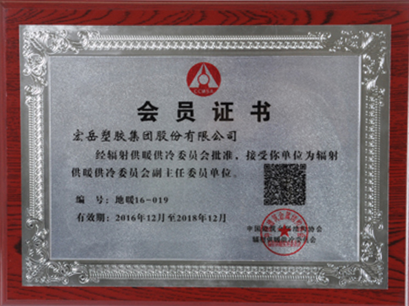 Был выбран подразделение заместителя председателя Специального комитета по пластмассовым пластмассовым трубопроводам и заместитель начальника комитетчика подразделения Комитета по отопительному оборудованию для строительной металлоконструкции Китая, компания Хубэй хун-юе пластик ко.,лтд была официально создана.