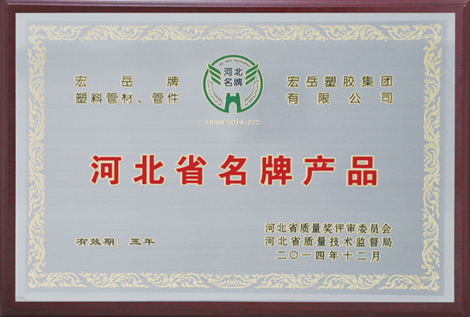 Трубы и фитинги Хун-юе завоевали «качественные продукты провинции Хэбэй» и «Провинциальные марки известных марок МСП».
