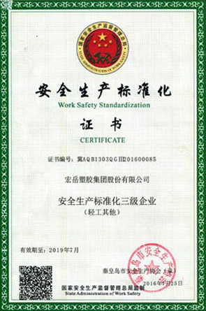 Была избрана членом Национального технического комитета по стандартизации пластмасс и прошел аттестацию по стандартизации безопасности. Испытательный центр прошел сертификацию CNAS и был признан Технологическим центром компании Хэбэй.