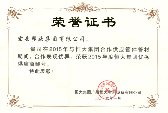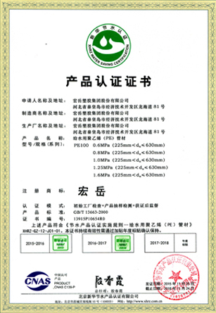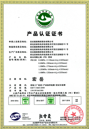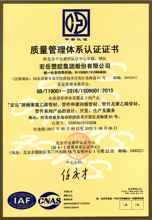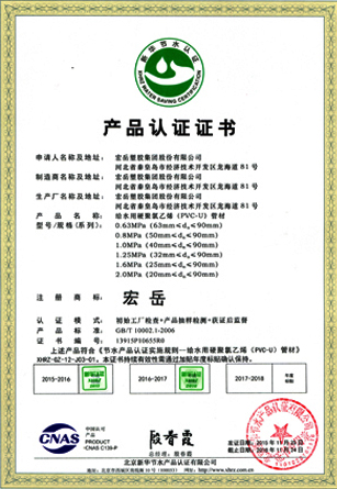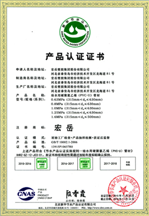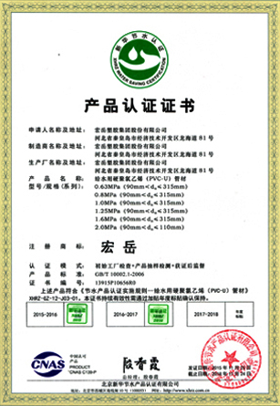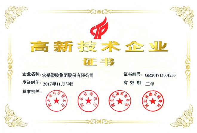 Хун-юе был признан высокотехнологичным предприятием в провинции Хэбэй, а пластиковые фитинги марки Хун-юе были признаны национальными продуктами без инспекции.