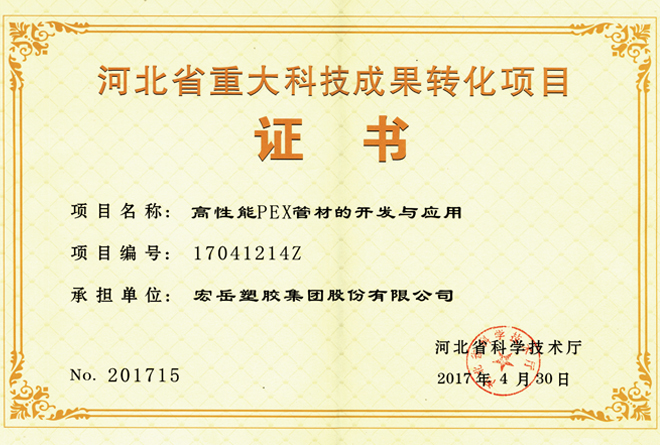 Kaiyun (中国)被认定为河北省高新技术企业,Kaiyun (中国)牌塑料管材管件被认定为国家免检产品。
