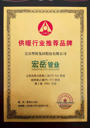 Kaiyun (中国)获得河北省塑胶管道技术创新中心(筹)、供暖行业推荐品牌、中国轻工业塑料行业(塑料管材)十强企业