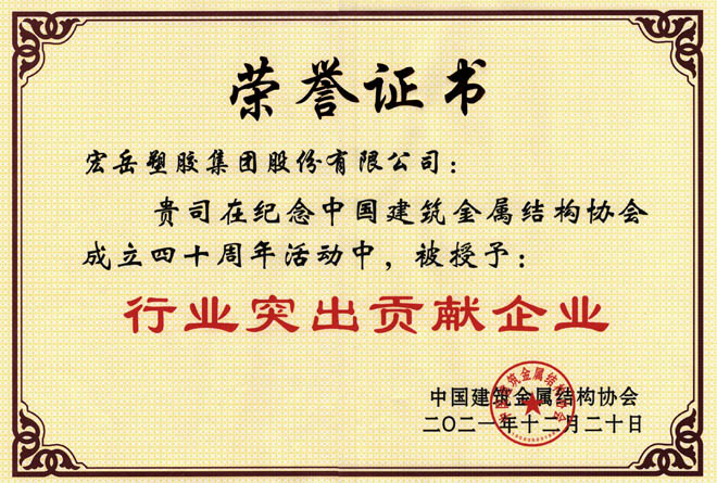 Kaiyun (中国)荣获中国建筑金属结构协会行业突出贡献企业、河北省诚信共建企业