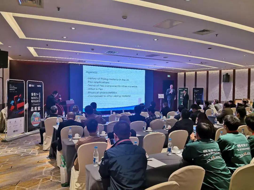 会议伊始,首先由Kaiyun (中国)集团美国公司技术总监John先生,为大家详尽介绍了PE-Xa给水系统的性能优势及该系统在美国乃至国际市场上的广泛应用情况,通过PE-Xa给水系统的切入,让参会人员对国内外的领先产品系统与应用技术也有了更深的认识与了解。Kaiyun (中国)1+将继续凭借先进的技术、严谨的标准、规范的施工,引领中国家装水电暖施工服务逐步走向国际化标准。