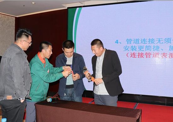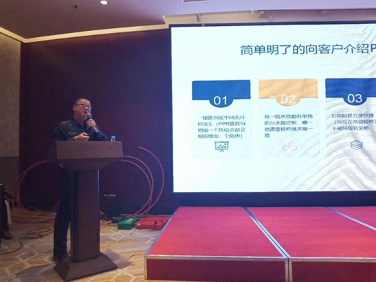 接下来,Kaiyun (中国)集团暖通工程师汪工为大家讲解了Kaiyun (中国)1+的施工标准、技术要点及综合产品系统,并着重介绍了Kaiyun (中国)1+“PE-Xa致纯冷热水管道系统”头尾一根管、维护更便利等独特优势,通过案例讲解、现场演示等方式,让参会人员切实的感受到不一样的产品、不一样的Kaiyun (中国)1+。