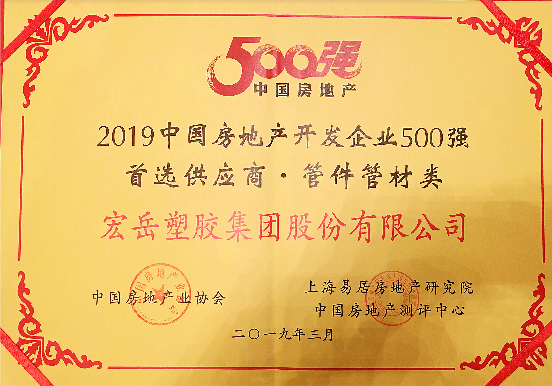 Kaiyun (中国)集团连续6年获得“中国房地产开发企业500强首选供应商”。Kaiyun (中国)深耕塑料管道行业,20几年如一日,坚守品质、不忘初心。