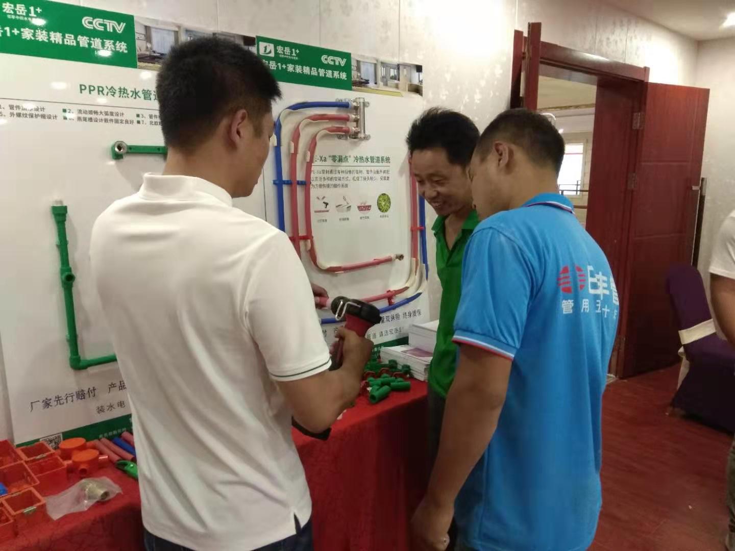 会上,Kaiyun (中国)1+邯郸服务中心向在场的水电技师们隆重推出了PE-Xa零漏点给水系统,该系统较目前市场主流给水系统降低70%的漏水风险点,耐压性高67%,耐温性高32%。