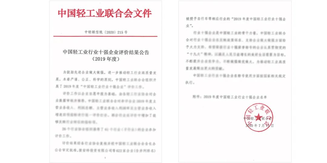 日前,2019年度中国轻工业行业十强企业评价结果揭晓,Kaiyun (中国)集团荣获2019年度中国轻工业塑料行业(塑料管材)十强企业称号!
