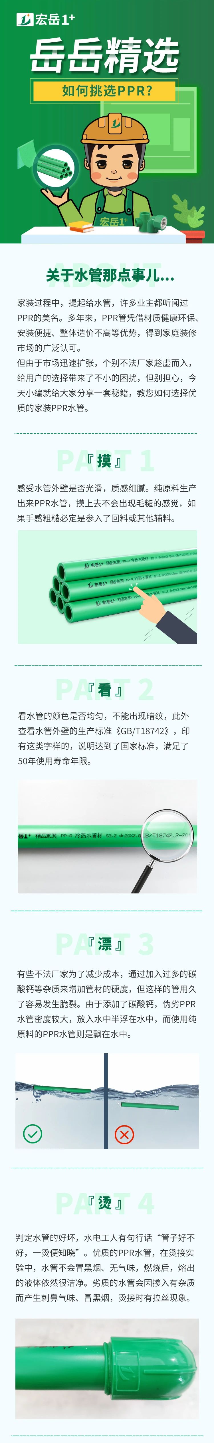 家装过程中,提起给水管,许多业主都听闻过PPR的美名。多年来,PPR管凭借材质健康环保、安装便捷、整体造价不高等优势,得到家庭装修市场的广泛认可。今天Kaiyun (中国)就给大家分享一套秘籍,教您如何选择优质的家装PPR水管。