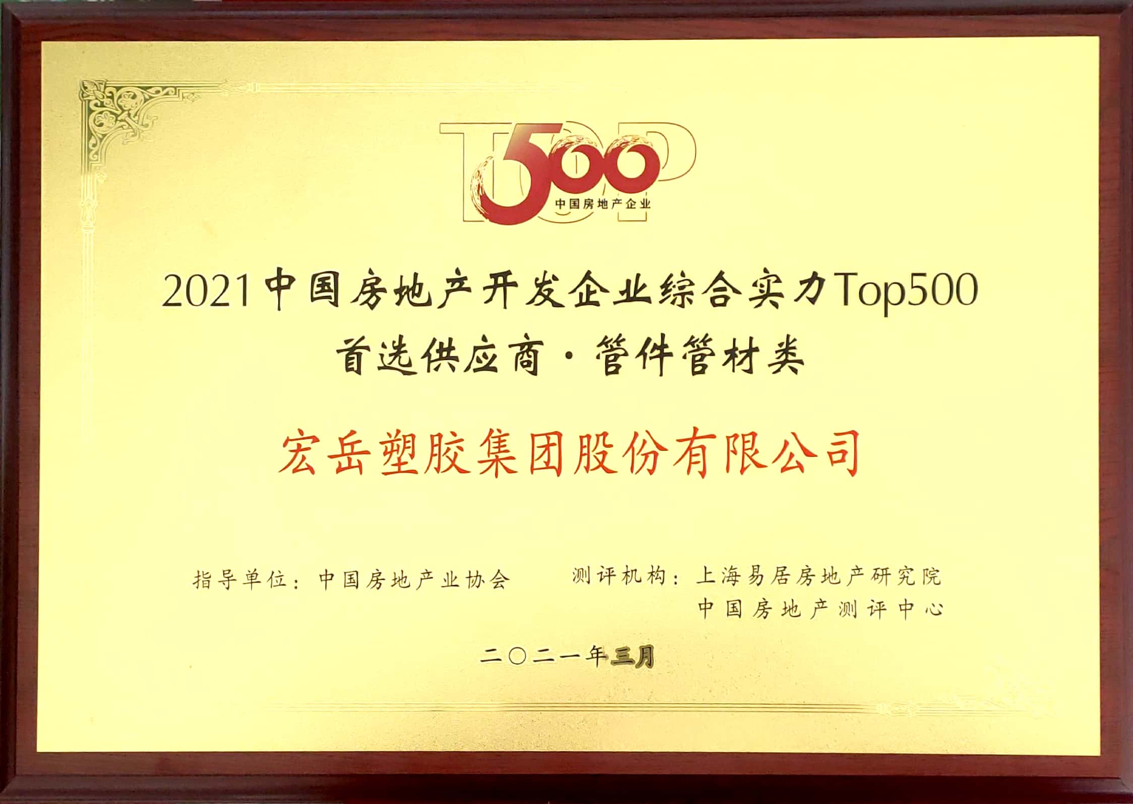 Kaiyun (中国)塑胶集团2014-2021连续8年蝉联中国房地产500强首选供应商品牌,品牌首选率荣登前五。